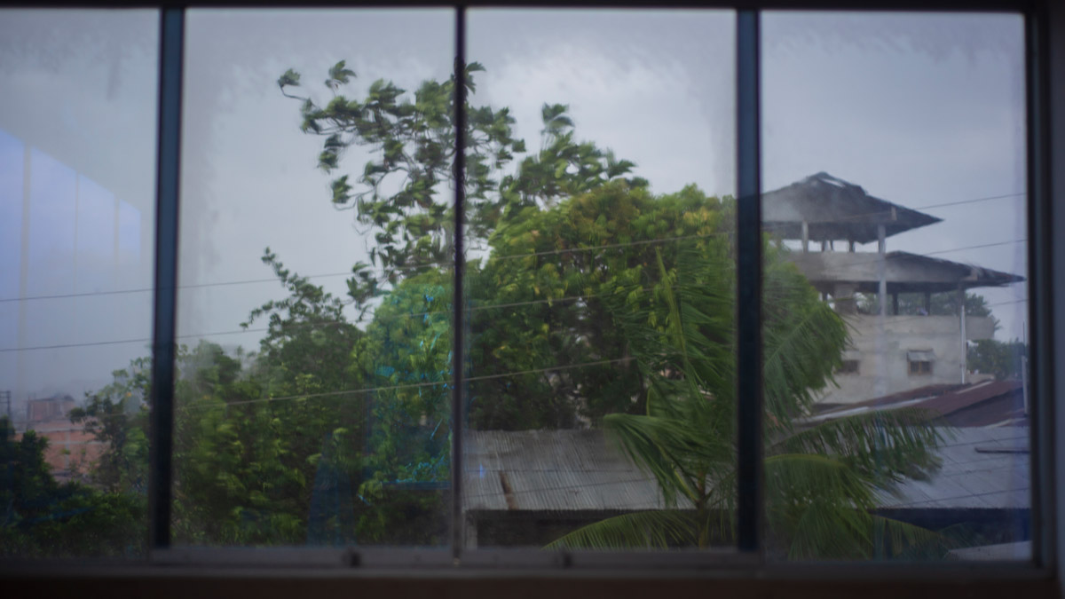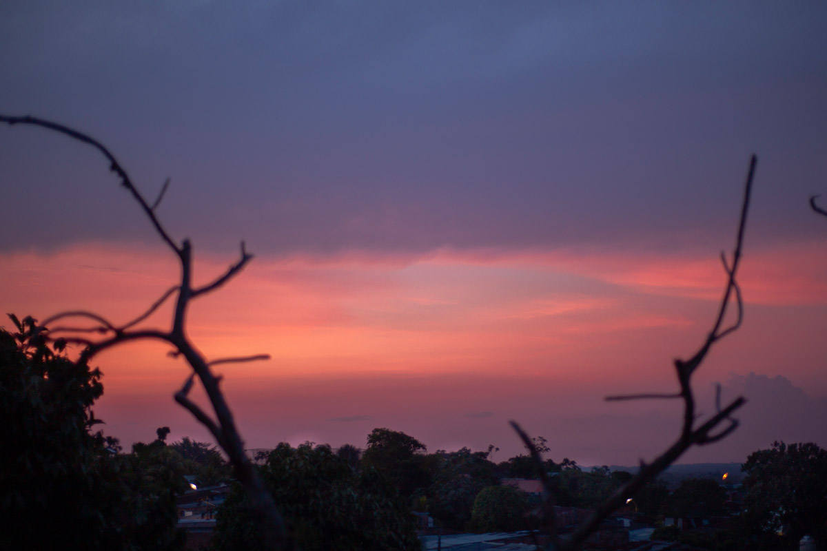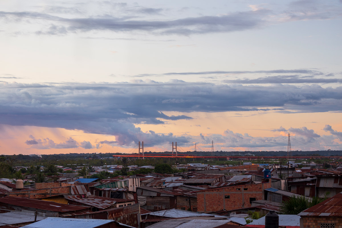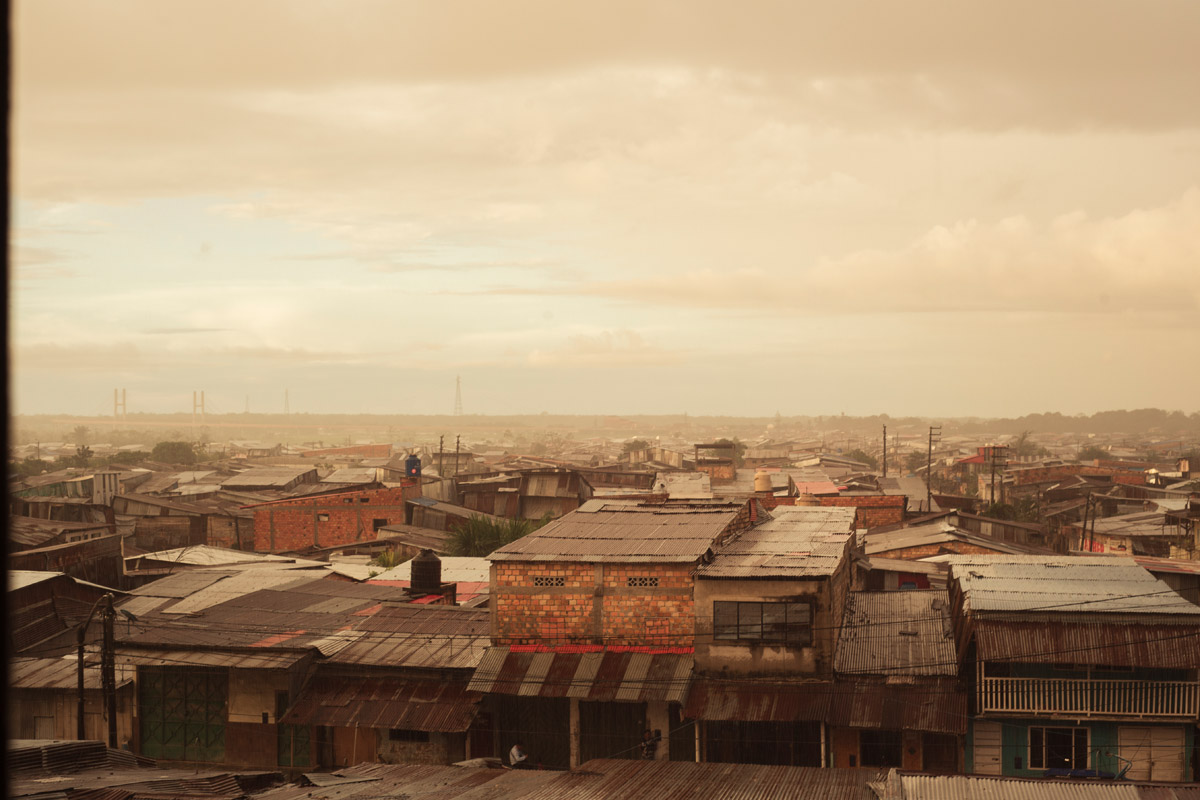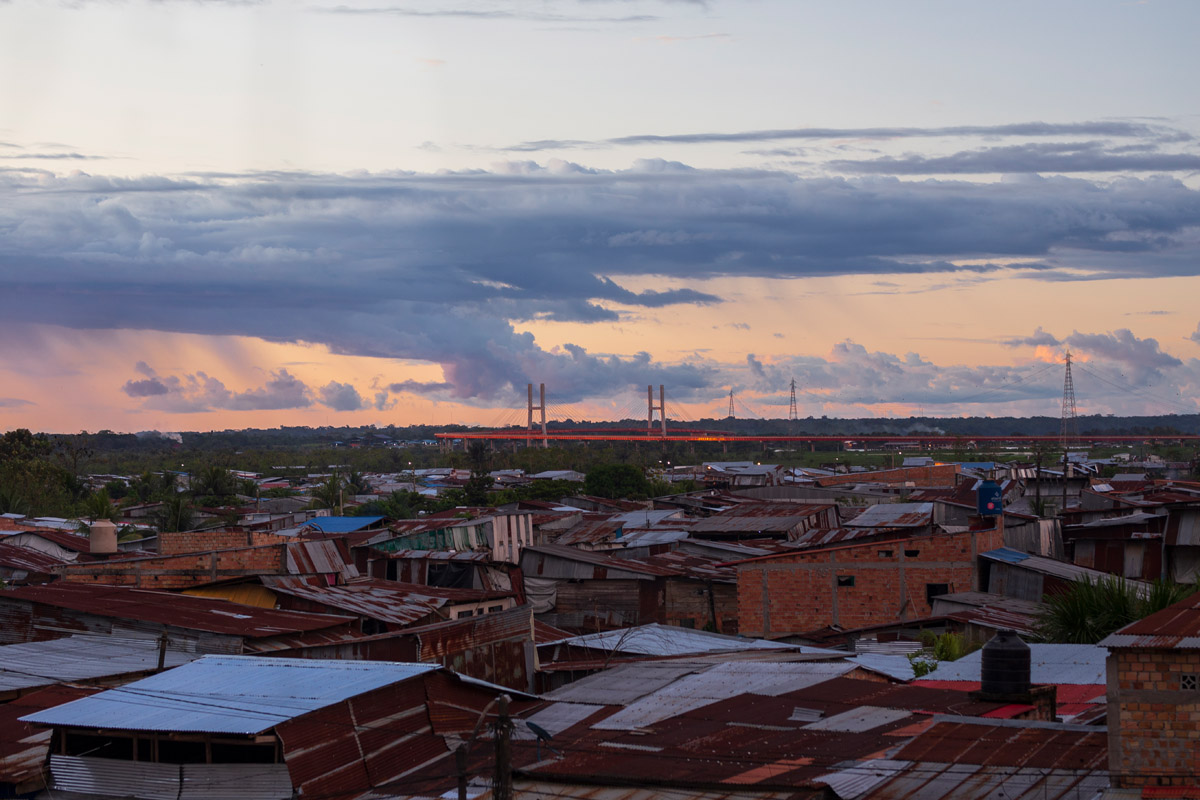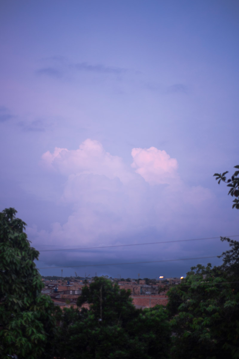 La Ventana Amazónica is a series of photographs taken between March and June 2024, while I was living in a hostel in Iquitos. Iquitos is the only real city in the heart of the north Peruvian Amazon Forest. There are no direct roads to this place. You have to get there by boat or by plane. The great thing about this hotel room I had was that it had three large windows. Each of them looked out onto a different side of the barrio. The room was on top of a small hill. I was always captivated by the view, as well for the visual and audio. I could hear the sounds of tropical birds and insects mixed with the rumble of mototaxis, sometimes voices and latin music from neighbourhood parties, sometimes the rain heavily falling on iron roofs. Each day was a totally different visual mood. One day, it was dramatic red sunset; other day it was yellowish fog; other days the view was so blended in pastel tones that it seemed surreal.